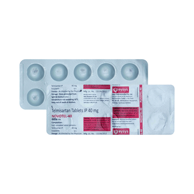 Novotel 40 Tablet is a medicine used to treat high blood pressure and heart failure. Lowering blood pressure helps prevent future heart attacks and strokes. This medicine is also effective in preserving kidney function in patients with diabetes.Novotel 40 Tablet can be prescribed either alone or in combination with other medicines. It can be taken with or without food, but take it at the same time every day to obtain effective results. It is important to continue taking it regularly even if you feel well or if your blood pressure is controlled. Most people with high blood pressure do not feel ill, but if you stop taking this medicine, your condition could get worse. This is a widely used medicine and is considered safe for long-term use.