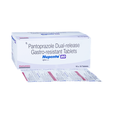 Nupenta 80mg Tablet is used for the treatment of peptic ulcer disease, reflux esophagitis or gastroesophageal reflux disease (GERD). Nupenta 80mg Tablet prevents acidity associated with use of painkillers. It is also used to treat a disease associated with excessive acid production in the stomach known as Zollinger Ellison syndrome (ZES). It works by reducing the amount of acid made by your stomach and thus relieves your symptoms.