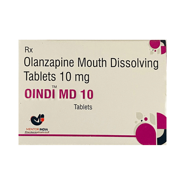 Oindi MD 10 Tablet is used in the treatment of schizophrenia (a mental disorder that can result in hallucinations or delusions and also adversely affects a person’s ability to think and behave) and mania.