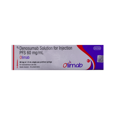 Olimab Injection is a medicine used in the treatment of osteoporosis in postmenopausal women and in men at increased risk of fractures. It makes the bones strong and reduce the risk of fractures.
