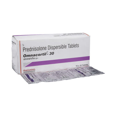 Omnacortil 30 Tablet DT is a steroid. It is used to treat a wide variety of medical conditions such as severe allergic reactions, allergic conditions, asthma, rheumatic disorder, skin and eye disorders, and nephrotic syndrome. It suppresses the immune system and provides relief from inflammation.