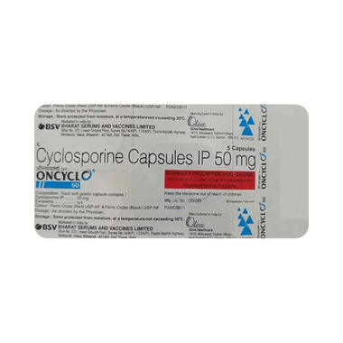 Oncyclo 50mg Capsule is used to prevent the body from rejecting a new organ after a liver, kidney, heart transplant, or bone marrow transplantation. It weakens the immune system so that your body does not attack the new organ. It is also used to treat nephrotic syndrome, severe rheumatoid arthritis, and psoriasis.