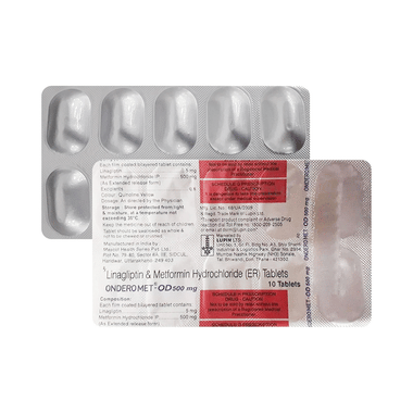 Earlier taking Ondero Met 500mg/5mg Tablet ER, inform your doctor if you have a history of kidney, liver, or heart disease or any pancreatic issues. Pregnant or breastfeeding women should also consult their doctor before taking this medicine. Some medicines can interact and affect the effectiveness of Ondero Met 500mg/5mg Tablet ER; tell your doctor about all the medicines you are taking to ensure it is safe for you. Avoid drinking alcohol, as it can lower blood sugar levels. Your doctor will monitor your kidney function and blood sugar levels before and during treatment. Ondero Met 500mg/5mg Tablet ER should not be used to treat type 1 diabetes.