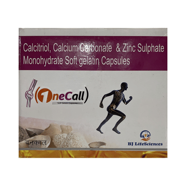 Onecall Softgel Capsule is a combination of medicines that is used to treat nutritional deficiencies. It helps in the absorption of calcium and bone strengthening. It helps in proper growth and development of bones. It also helps in protein synthesis and the production of blood cells (red and white blood cells).