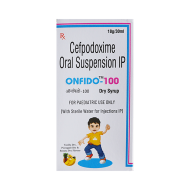 Onfido 100 Dry Syrup Vanilla,Pineapple & banana is an antibiotic medicine. It is commonly given to children for the treatment of a wide range of bacterial infections targeting the ears, eyes, nose, throat, lungs, skin, gastrointestinal tract, and urinary tract. It is also effective in treating typhoid fever in children and adolescents.