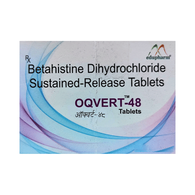 Oqvert 48 Tablet SR is used to prevent and treat a disorder of the inner ear known as Ménière’s disease. The symptoms include dizziness (vertigo), ringing in the ears (tinnitus), and loss of hearing, probably caused by fluid in the ear. This medicine helps relieve the symptoms by reducing the amount of fluid.