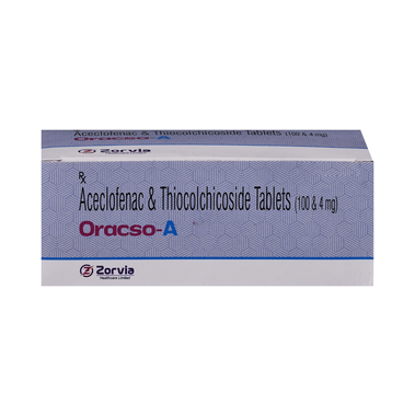 Oracso-A Tablet is a combination of two medicines: Aceclofenac and Thiocolchicoside. This medication helps in relieving muscle pain. It relaxes the muscles by acting on the central nervous system and lowering chemical substance in the body that cause pain and inflammation.