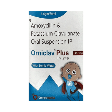 Orniclav Plus Dry Syrup is an antibiotic medicine that helps treat bacterial infections of the ear, nose, throat, chest, lungs, teeth, skin, and urinary tract. It is capable of killing bacteria that have become resistant to other therapies and thus also helps treat tuberculosis that is resistant to other treatments.