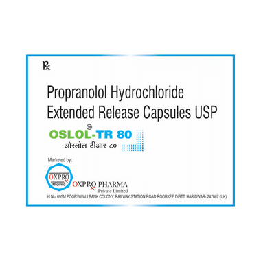 Oslol-TR 80 Capsule is a medicine used to prevent angina (chest pain) and migraine, and manage pheochromocytoma (a rare adrenal gland tumor). It works by slowing the heart rate and relaxing blood vessels, helping to reduce strain on the heart and improve blood flow.Take Oslol-TR 80 Capsule in the dose and duration prescribed by your doctor. It will depend on what you are being treated for and how you respond to the medicine. You should always take it as prescribed by the doctor. It can be taken with or without food. You should keep taking it even if you feel well, as you are still getting the benefits. If you stop taking it suddenly, your condition may worsen.