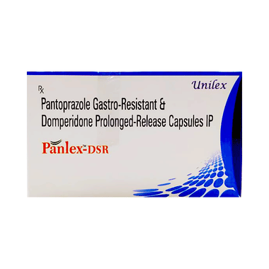 Panlex-DSR Capsule is a combination of two medicines used to treat acidity, heartburn, and gastroesophageal reflux disease (GERD) — a condition in which stomach acid flows back into the food pipe (esophagus). It works by improving the movement of the stomach and intestines, helping food pass more easily through the digestive tract. It also reduces the amount of acid produced in the stomach, providing relief from acid-related indigestion and heartburn.