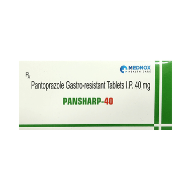 Pansharp 40 Tablet is used for the treatment of peptic ulcer disease, reflux esophagitis or gastroesophageal reflux disease (GERD). Pansharp 40 Tablet prevents acidity associated with use of painkillers. It is also used to treat a disease associated with excessive acid production in the stomach known as Zollinger Ellison syndrome (ZES). It works by reducing the amount of acid made by your stomach and thus relieves your symptoms.