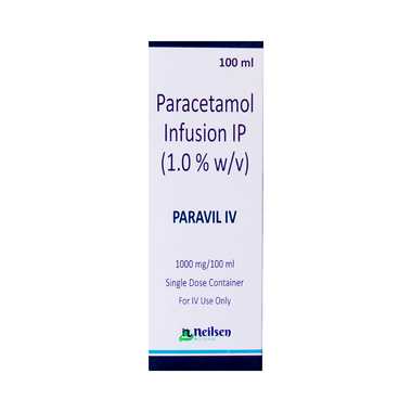 Paravil IV Infusion helps in relieving moderate pain and reducing fever. It effectively alleviates pain and reduces fever for the short-term in cases following surgery or in cases where oral administration is not possible.Paravil IV Infusion is administered by a doctor or a nurse and should not be self-administered. Depending on the severity of your underlying illness, your doctor will decide the precise dose and schedule as per which this injection is to be given. It starts working within one hour. Inform your doctor if you are also taking other medications containing paracetamol to avoid an overdose. You should let your doctor know if your pain or fever does not subside.