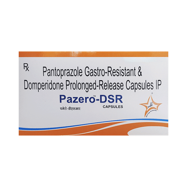 Pazero-DSR Capsule is a medicine that is used to treat conditions like acid reflux disease (GERD), erosive esophagitis, gastritis, gastric and duodenal ulcers, and indigestion with symptoms like heartburn, bloating, and regurgitation. It works by lowering acid production and helping the stomach empty faster.Take Pazero-DSR Capsule exactly as prescribed by your doctor, usually once daily before breakfast. Swallow it whole with water; do not crush or chew. To get the best results, maintain a healthy diet, avoid late-night meals, caffeine, spicy or oily foods, and stop smoking or alcohol use. Do not skip doses or stop early, even if you feel better, as that may lead to a return of the symptoms.
