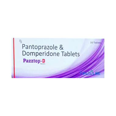 Pazztop-D Tablet is a medicine that is used to treat conditions like acid reflux disease (GERD), erosive esophagitis, gastritis, gastric and duodenal ulcers, and indigestion with symptoms like heartburn, bloating, and regurgitation. It works by lowering acid production and helping the stomach empty faster.