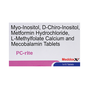 Composition: Myo-Inositol (550mg) + D-Chiro Inositol (13.8mg) + Metformin (500mg) + L-Methyl Folate Calcium (0.5mg) + Methylcobalamin (750mcg)