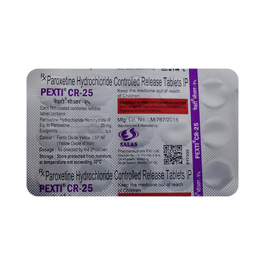 Find out detailed description, uses, directions of use, side effects, warnings and precautions, frequently asked questions about Pexti CR 25 Tablet