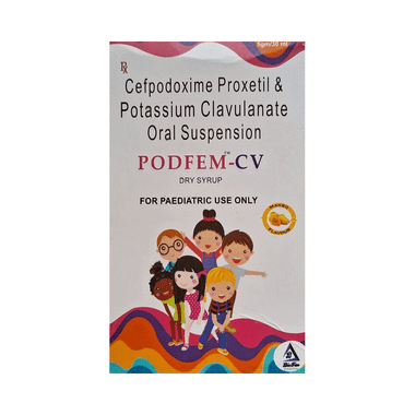 Podfem-CV Dry Syrup Mango is a combination of two medicines: Cefpodoxime and Clavulanic acid. This medication is used to treat bacterial infection. This medication works by killing the harmful bacteria that cause infection.