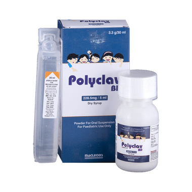 Polyclav BD 228.5mg Dry Syrup is an antibiotic medicine that helps treat bacterial infections of the ear, nose, throat, chest, lungs, teeth, skin, and urinary tract. It is capable of killing bacteria that have become resistant to other therapies and thus also helps treat tuberculosis that is resistant to other treatments.