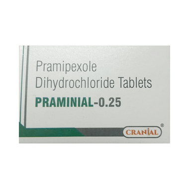 Praminial 0.25 Tablet is used in the treatment of Parkinson's disease and restless leg syndrome (an urge to move the legs usually accompanied or caused by uncomfortable and unpleasant leg sensations). It helps to treat excessive shaking by slowing down the body movements.