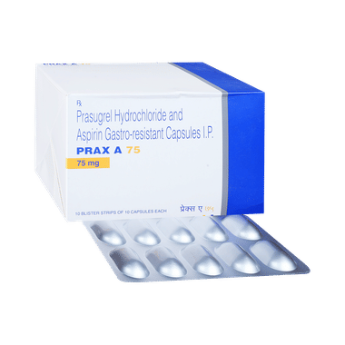 Prax A 75 Capsule is a combination of two antiplatelet medicines used to reduce the formation of harmful blood clots in blood vessels. This helps to prevent a heart attack or stroke in people with heart disease.