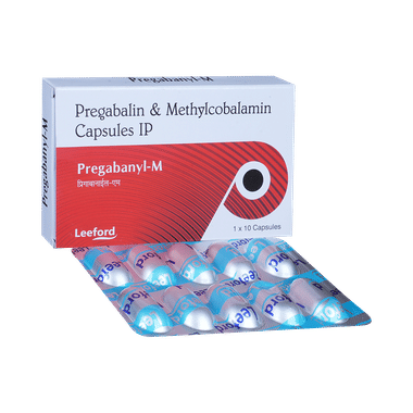 Pregabanyl-M 750mcg/75mg Capsule is a combination of two medicines: pregabalin and methylcobalamin. It is used for the treatment of nerve pain (neuropathic pain). It calms the damaged or overactive nerves by acting on the brain, thereby decreasing the pain sensation. It also helps in the regeneration of damaged nerves in the body.