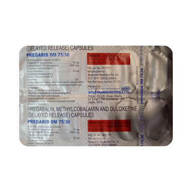Earlier you start Pregabid DM 75/30 Capsule, let your doctor know if you have any medical conditions. Let your doctor also know about all the medications you are taking as some medicines may interact with Pregabid DM 75/30 Capsule. Pregnant or breastfeeding women should consult their doctor before taking Pregabid DM 75/30 Capsule to ensure safety.