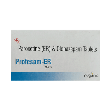 Profesam-ER Tablet is a prescription medicine used to treat depression. It is a combination medicine that works by increasing the level of chemical messengers in the brain that improve mood. It also calms the brain by decreasing the abnormal and excessive activity of the nerve cells.