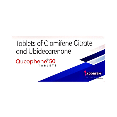 Qucophene 50 Tablet is a medicine used to treat female infertility. It increases the chances of pregnancy in women who have a problem with ovulation (release of an egg) or have a condition called polycystic ovary syndrome (PCOS).