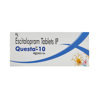 Questa 10 Tablet helps recover from depression by improving mood and relieving anxiety and tension. It can be taken with or without food. The dose and how often you need it will be decided by your doctor based on the amount needed to control your symptoms. Your doctor may start you on a lower dose and increase it gradually. Do not change the dose or stop taking it without talking to your doctor, even if you feel well. Doing so may make your condition worse, or you may suffer from unpleasant withdrawal symptoms such as anxiety, restlessness, palpitations, dizziness, and sleep disturbances.