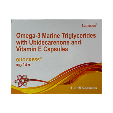 Find out detailed description, uses, directions of use, side effects, warnings and precautions, frequently asked questions about Quogress Soft Gelatin Capsule With CoQ10 Vitamin E & Omega-3 Fatty Aids