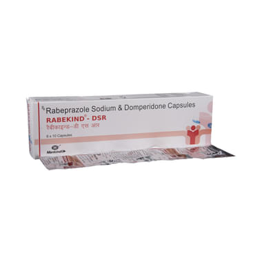 Rabekind-DSR Capsule is a combination of two medicines: Domperidone and Rabeprazole. This combination is used to treat acidity and heartburn or gastroesophageal reflux disease (GERD); a condition where the acid in the stomach flows back up into the food pipe (esophagus). It is also used to treat gastric and duodenal ulcers. Domperidone helps to control vomiting by increasing the movement of the gut, allowing the food to move more easily through the stomach.