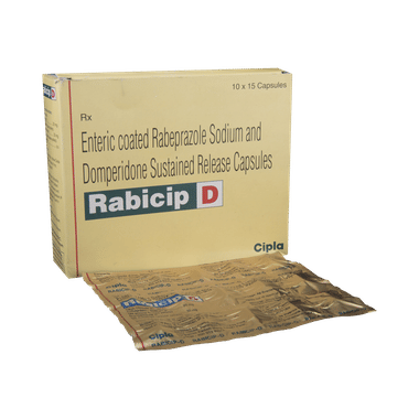 Rabicip D Capsule SR is a combination medicine used to treat gastroesophageal reflux disease (acid reflux). It works by relieving the symptoms of acidity, such as heartburn, stomach pain, or irritation. It also neutralizes the acid and promotes easy passage of gas to reduce stomach discomfort.