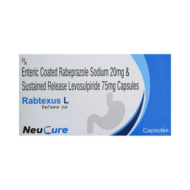 Rabtexus L Capsule SR is a prescription medicine which is used in the treatment of gastroesophageal reflux disease (acid reflux), intestinal ulcers, and irritable bowel syndrome. It reduces excess acid production in the stomach and prevents the reflux of stomach acid into the food pipe.Rabtexus L Capsule SR is taken with or without food in a dose and duration as advised by the doctor. The dose you are given will depend on your condition and how you respond to the medicine. You should keep taking this medicine for as long as your doctor recommends. If you stop treatment too early your symptoms may come back and your condition may worsen. Let your healthcare team know about all other medications you are taking as some may affect, or be affected by this medicine.