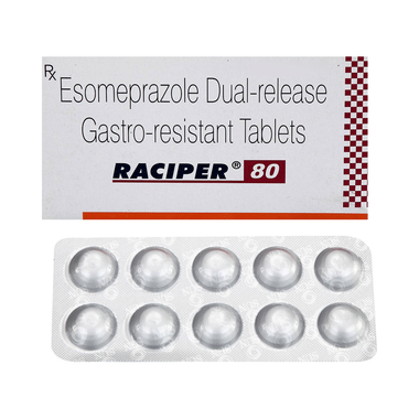 racipER 80 Tablet DR can also be used to prevent stomach ulcers caused by certain medications, such as nonsteroidal anti-inflammatory drugs (NSAIDs). Take it in the exact dose and duration prescribed by your doctor. It is usually taken on an empty stomach, preferably in the morning or at least 1 hour before a meal. Continue taking the medicine even if your symptoms disappear until the doctor says it is okay to stop. If you are taking this medicine for a long time, your doctor may carry out regular tests to check your levels of magnesium which can fall with this medicine.
