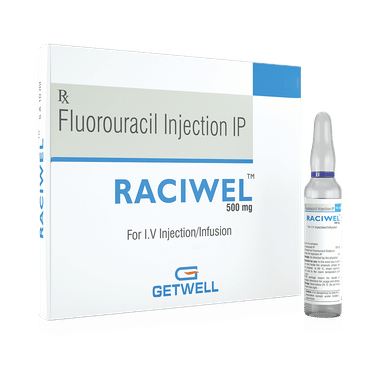 Raciwel 500mg Injection is used in the treatment of cancers of stomach, colon, rectum, breast, and lungs. It may be used to treat other conditions, as determined by the doctor. It is sometimes used with certain other medicines as part of combination chemotherapy.