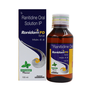 Ranidom PD 75mg/5ml Syrup is used to treat conditions caused by excess stomach acid, such as gastroesophageal reflux disease (GERD) and peptic ulcer disease. It works by reducing the amount of acid produced in the stomach, thereby relieving symptoms such as heartburn, acidity, and stomach discomfort.