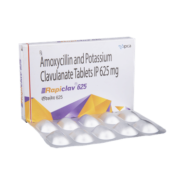Rapiclav 625 Tablet is an antibiotic that helps your body fight infections caused by bacteria. It is used to treat infections of the lungs (e.g., pneumonia), the ear, the nasal sinus, the urinary tract, the skin, and the soft tissue. It will not work for viral infections such as the common cold.