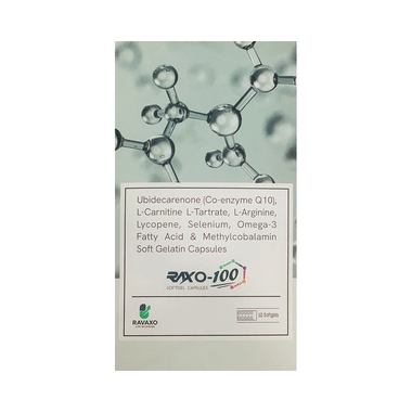 Raxo 100 Softgel Capsule is a combination of multiple nutritional supplements. It is taken to treat conditions caused by nutritional deficiencies such as vitamins, minerals, and other nutrients in the body. It provides essential nutrients to our body and ensures proper growth and helps improve overall health.Raxo 100 Softgel Capsule may be taken with or without food. Take it in the dose and duration advised by the doctor. To get the most benefit, take it regularly at the same time each day and continue taking it until your prescription is finished. Do not take it more than or longer than prescribed by the doctor, as that may cause harmful effects.