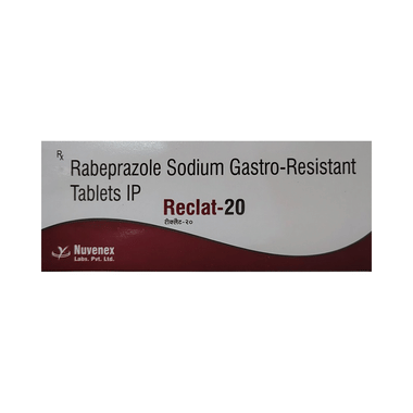 Reclat 20 Tablet is a medicine that reduces the amount of acid produced in your stomach. It is used in the treatment of acid-related diseases of the stomach and intestine such as acid reflux, peptic ulcer disease, and Zollinger-Ellison syndrome. It provides relief from symptoms and promotes healing.