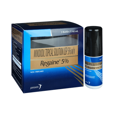 Find out detailed description, uses, directions of use, side effects, warnings and precautions, frequently asked questions about Regaine 5% Solution (3 Bottles)