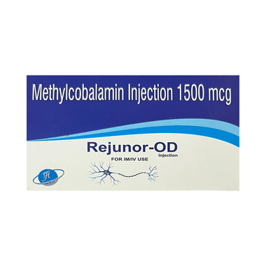 Rejunor-OD Injection is a man-made form of vitamin B12. It is used to treat deficiency of vitamin B12 in the body. Vitamin B12 is important for growth, cell reproduction, blood formation, and protein and tissue synthesis. It also helps to treat anemia, fatigue, and numbness or tingling in the hands and feet.Rejunor-OD Injection should be used exactly as prescribed by the doctor. Follow all directions on the prescription label and read all medication guides before use. You should use it regularly and at a fixed time each day to get the most benefit from it. This medicine may be only part of a complete program of treatment that also includes making changes to your diet and taking other medicines and supplements. Absorb about the foods you should eat to make sure you get enough vitamin B12 in your diet.