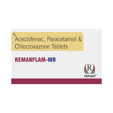 Remanflam-MR Tablet is a combination of three medicines: Aceclofenac, Paracetamol and Chlorzoxazone. This medicine helps in relieving muscle pain by relaxing the affected muscles. It relieves pain caused due to muscle spasm, cramp or injury. It also lowers certain chemical substances in the body that cause pain.