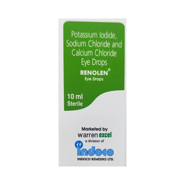Renolen Eye Drop with Potassium lodide, Sodium Chloride & Calcium Chloride is a combination of medicines that is used to treat the disorders of eyes. It helps in improving the eyesight. It prevents cataract or opacity or any other eye diseases.Renolen Eye Drop with Potassium lodide, Sodium Chloride & Calcium Chloride is to be used only in the affected eye in the dose and duration as advised by the doctor. Wash your hands before using this medicine. It is advised to check the label for directions before use. Do not skip any doses and finish the full course of treatment even if you feel better. Stopping the medicine too early may lead to the infection returning or worsening.
