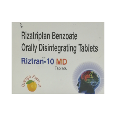 Riztran 10 MD Tablet Orange is used in the treatment of acute attacks of migraine. It relieves the symptoms of migraine and prevents the attack from becoming worse. This medicine helps by narrowing the blood vessels, thereby relieving migraine headaches.