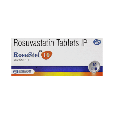 RoseStel 10 Tablet belongs to a group of medicines called statins. It is used to lower cholesterol and triglyceride levels and reduce the risk of heart disease. Cholesterol is a fatty substance that builds up in your blood vessels and causes narrowing, which may lead to a heart attack or stroke.