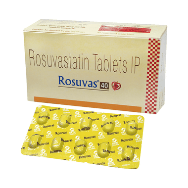 Rosuvas 40 Tablet belongs to a group of medicines called statins. It is used to lower cholesterol and triglyceride levels and reduce the risk of heart disease. Cholesterol is a fatty substance that builds up in your blood vessels and causes narrowing, which may lead to a heart attack or stroke.