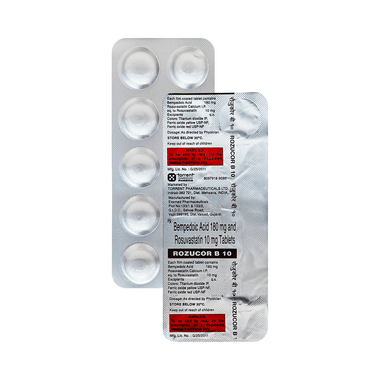 Rozucor B 10 Tablet is a combination medicine used to lower cholesterol and reduce the risk of heart disease. Cholesterol is a fatty substance that builds up in your blood vessels and causes narrowing, which may lead to a heart attack or stroke.Rozucor B 10 Tablet is a widely prescribed medicine and regarded as safe for long-term use. It can be taken with a meal or on an empty stomach. Take it at any time of the day but try to take it at the same time each day. Most people with high cholesterol do not feel ill, but stopping your medicine may increase your cholesterol levels, making your condition worse and increasing your risk of heart disease and stroke.