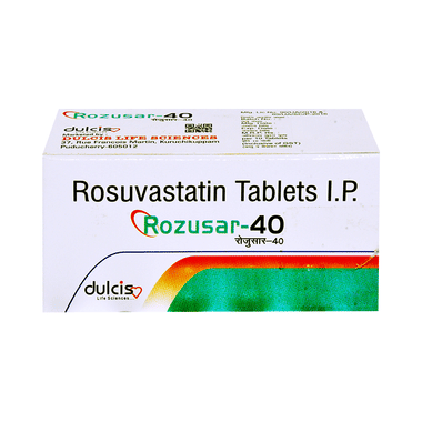Rozusar 40 Tablet belongs to a group of medicines called statins. It is used to lower cholesterol and triglyceride levels and reduce the risk of heart disease. Cholesterol is a fatty substance that builds up in your blood vessels and causes narrowing, which may lead to a heart attack or stroke.
