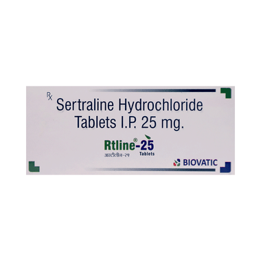 Rtline 25 Tablet should be taken exactly as prescribed by your doctor. It can be taken with or without food, but it is best to take it at the same time each day to help you remember. Treatment for depression and OCD often takes several weeks before you start to feel the full benefit, so it is important to keep taking the medicine regularly and not stop suddenly, even if you feel better.