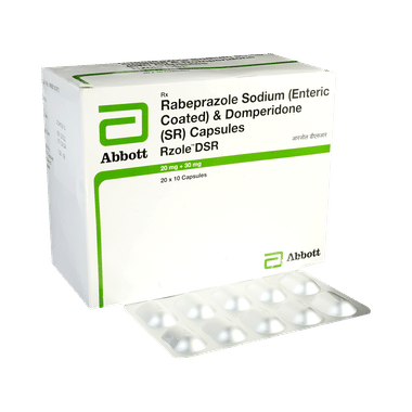 Rzole DSR Capsule is a combination of two medicines: Domperidone and Rabeprazole. This combination is used to treat acidity and heartburn or gastroesophageal reflux disease (GERD); a condition where the acid in the stomach flows back up into the food pipe (esophagus). It is also used to treat gastric and duodenal ulcers. Domperidone helps to control vomiting by increasing the movement of the gut, allowing the food to move more easily through the stomach.